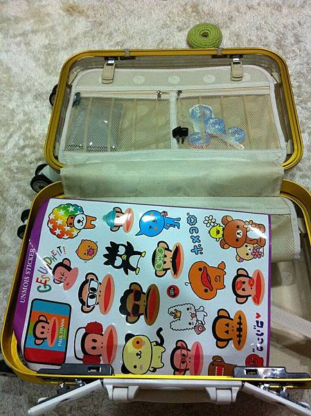 上面是箱貼,當箱子有刮傷時可以貼,可愛又美觀