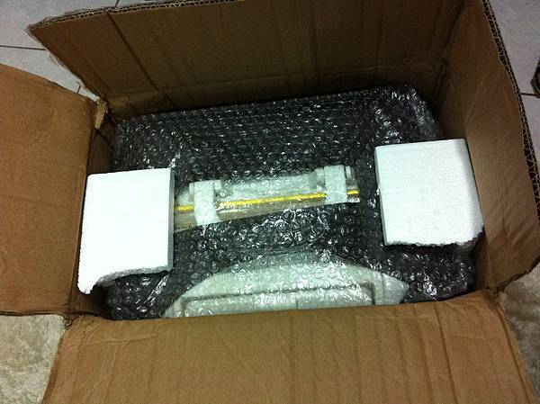 打開,可以看到是用氣泡紙包著,然後用保麗龍墊著防震